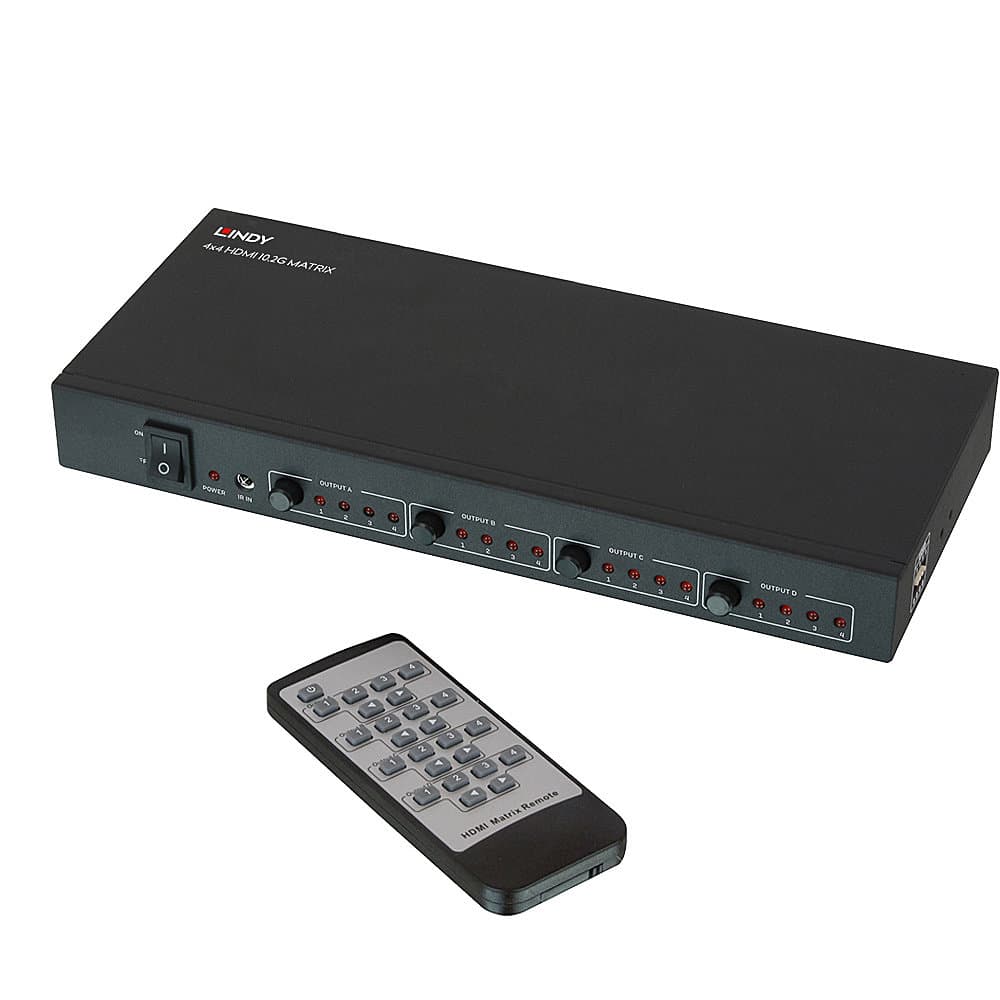 La matrice 4×4 HDMI 10.2G de LINDY est une solution efficace pour distribuer du contenu 4K à partir de 4 appareils HDMI, y compris les PC et les lecteurs multimédia, vers 4 affichages.