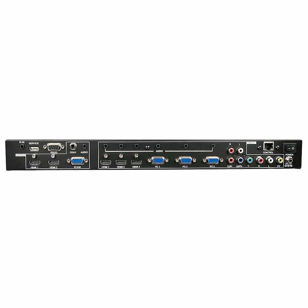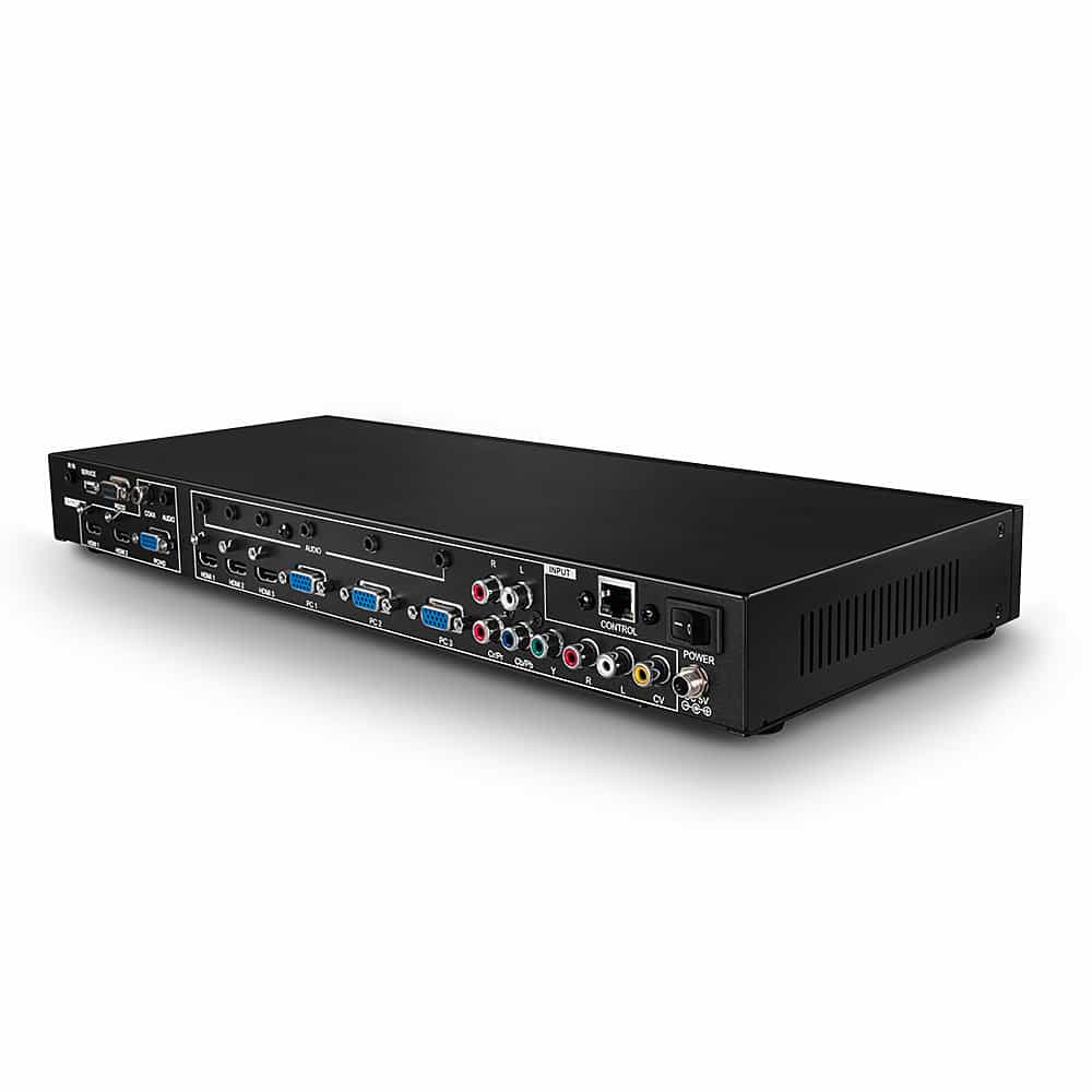 - Convertit et met à l'échelle 8 entrées AV en résolutions jusqu'à Full HD 1080p